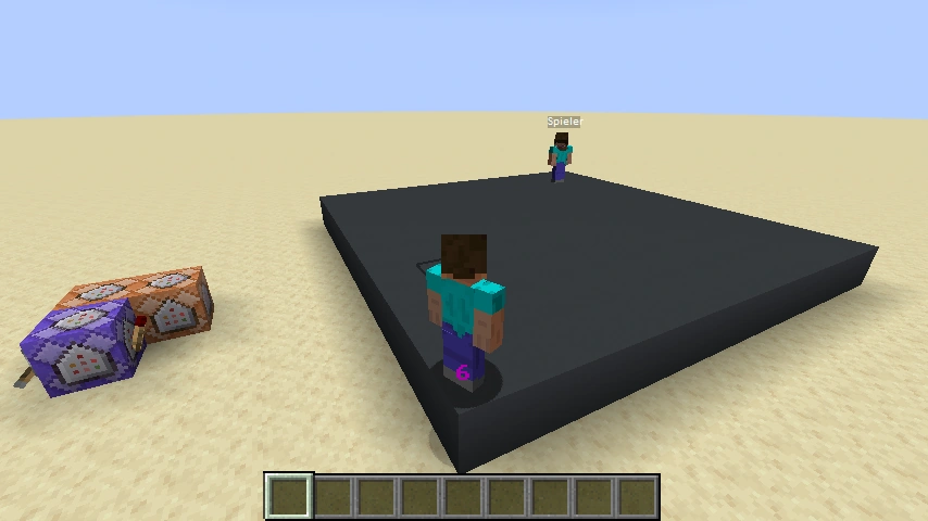 # Ein Punkte-Ziel wird erstellt. scoreboard objectives add PZManSV.1Wert dummy ["Mannschaftsverteiler.1: ",{"text":"Wert","bold":true}] scoreboard players set KonstManSV.1ZWEI PZManSV.1Wert 2 # Zwei Mannschaften werden erstellt. team add TMManSV.1Team1 ["Mannschaftsverteiler.1: ",{"text":"Mannschaft1","color":"red","bold":true}] team add TMManSV.1Team2 ["Mannschaftsverteiler.1: ",{"text":"Mannschaft2","color":"blue","bold":true}] team modify TMManSV.1Team1 color red team modify TMManSV.1Team2 color blue team modify TMManSV.1Team1 friendlyFire false team modify TMManSV.1Team2 friendlyFire false # Es wird ein Markierer erzeugt, an dessen Stelle ein grauer Betonboden gesetzt wird. summon minecraft:marker ~-10 ~ ~ {Tags:["EtiManSV.1Alle","EtiManSV.1Plattform"]} execute at @e[type=minecraft:marker,tag=EtiManSV.1Plattform] run fill ~-5 ~ ~-5 ~5 ~ ~5 minecraft:gray_concrete replace |
