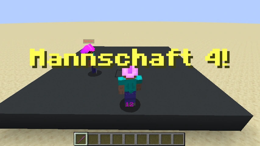 Dieser Mannschaftsverteiler ermöglicht es, dass man zwei bis vier Mannschaften festlegen kann, in die man hineingesteckt werden kann. Dazu wählt man einen Stock mit Verzauberungs aus und klickt auf die Schaltflächen im Chat. Wenn sich mindestens ein Spieler auf die Plattform stellt, beginnt der Zähler herunter zu zählen. Wenn der Zähler null erreicht, werden alle Spieler auf die eingestellten Mannschaften verteilt. Hierbei wird bei einer unpassenden Spieleranzahl dafür gesorgt, dass die restlichen Spieler auf die vorhandenen Mannschaften zufällig verteilt werden, sodass bei weiteren Mannschaftsverteilungen stehts ein ausgewogenes Verhältnis.