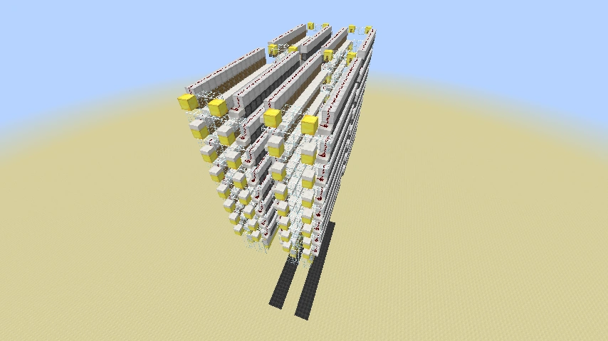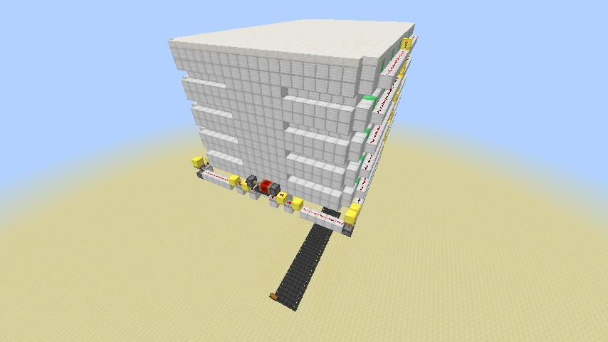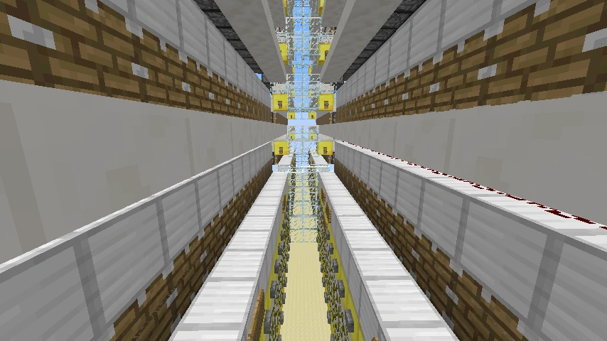 Hauptaugenmerk bei dieser Fallenanlage sind die Kolben samt Stufenreihen, welche die Monster zum Fallschacht verschieben und diese werden dadurch herab stürzen und sterben. So wie die Fallenanlage hier zu sehen ist, eignet sie sich nur Nachts, damit sie immer funktionstüchtig sein kann (Tag und Nacht) muss sie komplett umkleidet sein, mit soliden Blöcken. Dies wurde aber für Veranschaulichungen unterlassen. Die Fallenanlage muss mindestens 24 Blöcke über dem Boden sein, damit die Monster wirklich sterben. Dann gelangen die Drops in den Drop-Kanal und man kann sie von einer Truhe aus aufsammeln oder verwenden.