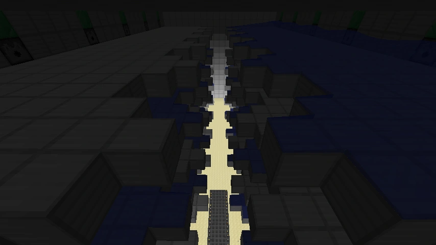 Diese Monster-Fallenanlage ist sehr effizient, die kann bis zu 13.000 Drops in der Stunde erreichen. Mit Hilfe eines komplexen Taktgebers werden Werfer mit Wassereimern immer so angesteuert, sodass immer 50% der dunklen Spawnfläche mit Wasserströmungen überdeckt ist und die andere Fläche nicht. Dadurch spawnen die Monster immer auf der Fläche, auf der keine Strömungen vorzufinden sind. Die Monster werden dann durch die Strömung auf den sehr tief gelegten Drop-Kanal stürzen. Dort sterben sie und lassen ihre Drops darauf fallen. Der Drop-Kanal sammelt alle fallen gelassenen Gegenstände auf und leitet sie dann in eine Truhe. Dort kann der Spieler dann die Gegenstände herausholen. Man kann aber auch den Drop-Kanal direkt mit Maschinen verbinden die Gegenstände verarbeiten, dann muss der Spieler selbst nicht einmal die Gegenstände herausholen.