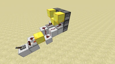Die Schießanlage sollte so gebaut werden, dass der Werfer einen Block Abstand zur Bodenhöhe hat. Dies wird im folgenden Bauplan berücksichtigt. Man kann - je nach Sachlage - auch einen größeren Abstand einhalten bzw. die Schießanlage auch in der Luft schwebend bauen. Es wird davon ausgegangen, dass mindestens ein Block vorhanden ist, auf dem die Schießanlage gebaut wird. Zuerst baut man einen drei-Block-hohen Turm aus soliden Blöcken, von denen der mittlere der Gravitation unterliegen darf und daraufhin gegen einen Werfer ausgetauscht wird. An den oberen Block werden, wie abgebildet, vier Redstone-Fackeln und ein Redstone-Staub platziert. Auf die Fackeln gehört jeweils ein solider Block, der der Gravitation unterliegen darf. Daraufhin platziert man an einen dieser Blöcke, wie ebenfalls abgebildet, einen Hebel, der zu aktivieren ist. An den untersten Block gehört - möglichst hinter der "Öffnung" des Werfers - ein solider Block, auf dem eine Redstone-Fackel zu platzieren ist. Durch Betätigung des Hebels wird die Schießanlage aktiviert. Die Schießanlage eignet sich leider zum (automatischen und effektiven) Griefen von Holz-Häusern. Bei Einsätzen mit Feuerkugeln, die nicht dem Griefen dienen, sollte man aufpassen, welche Gebäude sich in der Reichweite der Schießanlage befinden, da sie auf ebener Fläche sehr weit schießen kann.