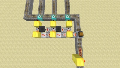 Dieses Sortiergleis ist eine Kombination aus drei Filtergleisen. Sie kann bemannte Fahrgastloren und leere Fahrgastloren unterscheiden und sie kann volle Behälterloren und unbeladene Behälterloren unterscheiden. Dies funktioniert durch exakte zeitliche Signalübertragung der Wegstrecken. Während eine beladene Behälterlore als einzige Lore ein Signal an den Komparator abgibt, lässt sich diese leicht erkennen, weshalb sie durch die erste Weiche direkt einsortiert wird. Leere Fahrgastloren verlieren sehr schnell ihre Geschwindigkeit gegenüber den anderen Loren, wodurch diese immer in die zweite Weiche einsortiert werden. Bemannte Fahrgastloren fahren genauso schnell wie Behälterloren, wodurch diese die ersten beiden Weichen überqueren. Durch den Stolperdraht wird eine bemannte Fahrgastlore erkannt. Dadurch wird diese Lore an der dritten Weiche einsortiert. Die unbeladene Behälterlore kann von keinem Sensor ordnungsgemäß erfasst werden, was zur Folge hat, dass eine Lore, die alle drei Weichen passieren konnte, eine Behälterlore sein muss.